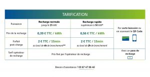 ** Le tarif post-charge ne s’applique pas la nuit de 22h à 8h pour les bornes de recharge normale.